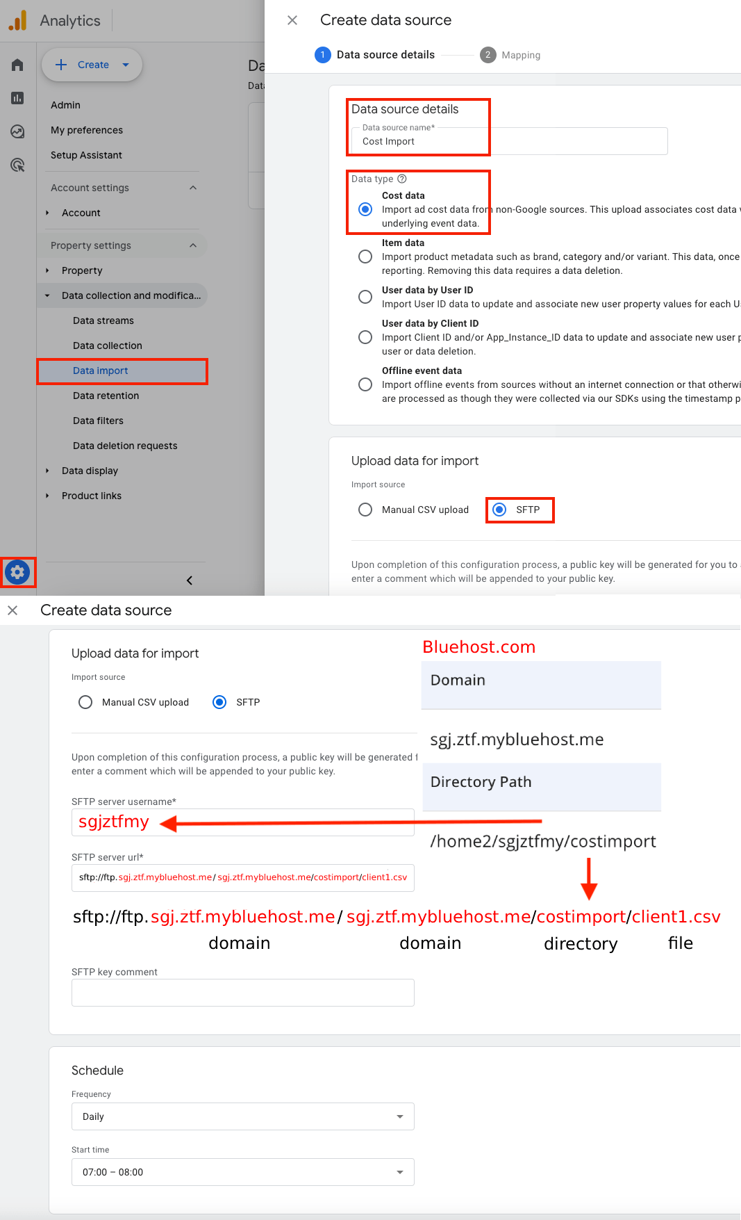Jak automaticky naimportuji náklady do GA4 přes SFTP server