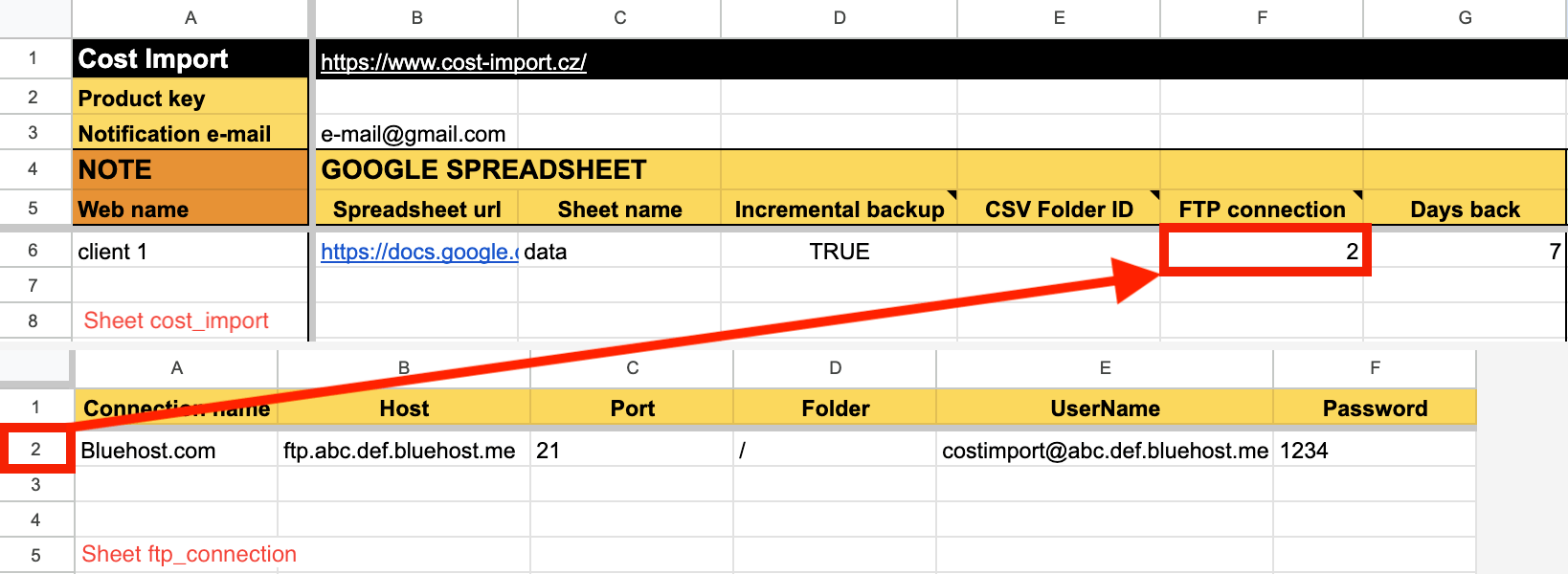- Do tohoto sloupce se vkládá číslo řádku z listu ftp_connection.
