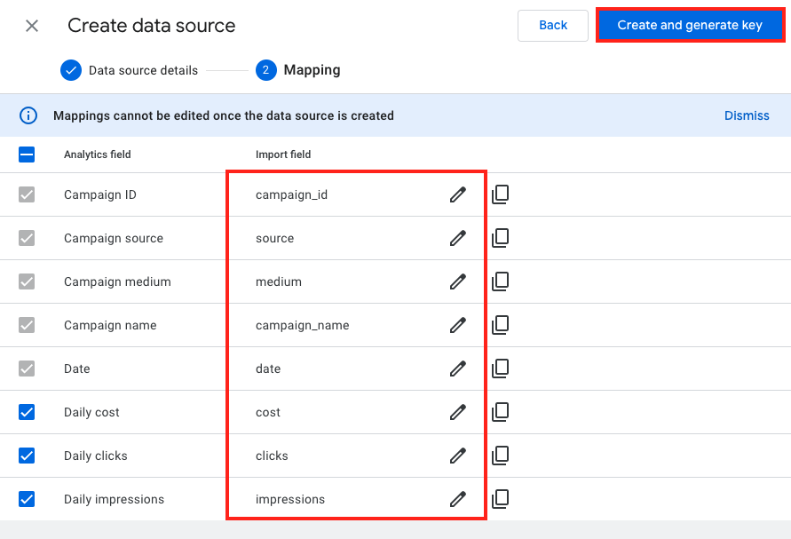 Pro import nákladů již není nutné používat utm_id ani utm_campaign. Data se spárují i jen na základě utm_source a utm_medium. Data lze už rovněž dohrát zpětně.